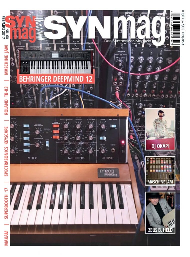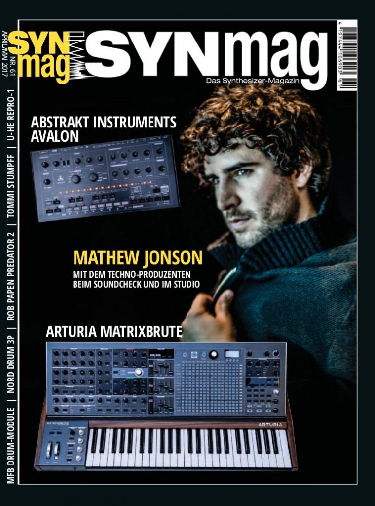 Abstrakt Instruments Avalon • Twisted Electrons AY3 • Arturia MatrixBrute • Twisted Electrons Octopus • MFB Drum Module Seq 01 Pro • Clavia Nord Drum 3P • U-He Repro-1 • D16 Punchbox • Accusonus Regroover • Rob Papen Predator 2 & Explorer 4 • Patchblocks Workshop II • Spectrasonics Keyscape Creative • Bernd Kistenmacher – Interview • 30 Jahre Deine Lakaien – Bildbericht • Tommi Stumpff – Interview • Thed! (Kiew) – Interview • Mathew Jonson – Studio-Bericht