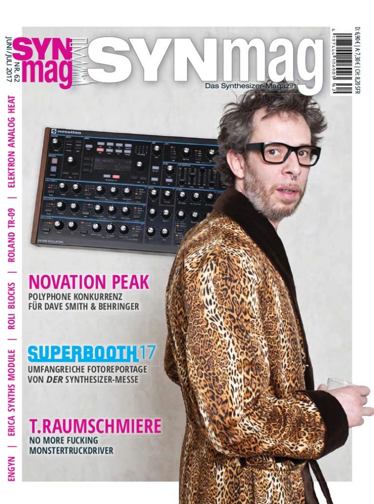 Faderfox PC4 • ROLI Blocks • Novation Peak • Erica Synth • Kilpatrick Phenol • Roland TR-09 • Elektron Analog Heat • Korg Gadget Mac • Embertone Mountain Dulcimer • iZotope Neutron • Arturia Mini Filter V • Synthesekommunismus: SynthSubnetwork und Synth1 – wie baue ich mir mit kaum Geld einen Klangerzeuger? • Bluetooth-Funkstrecke • Superbooth 17 • I. Raumschmiere • Engyn • Thorsten Quaeschning