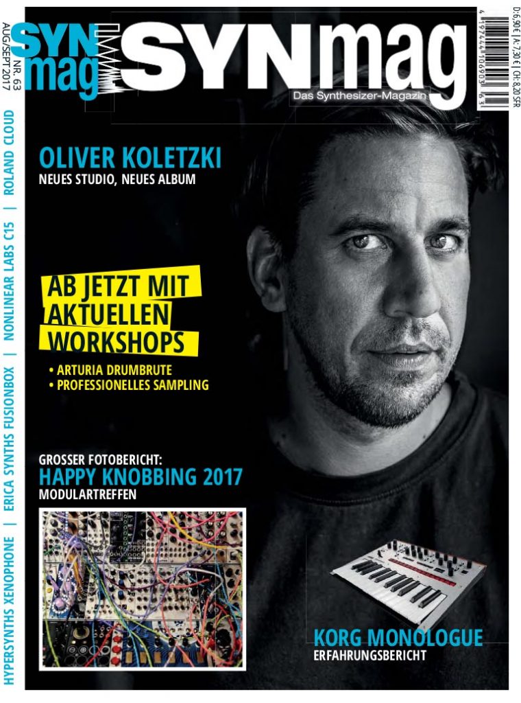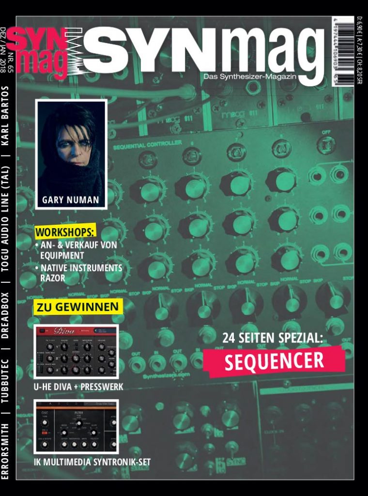 Tubbutech MIDI-CV Interface • Dreadbox White Line Modular • Sequencer – Special • Sequencer: Kilpatrick Carbon • Sequencer: Doepfer Sequencer • Sequencer: Twisted Electrons Crazy8 • Sequencer: NI Maschine MK3 • Preisausschreiben • XILS Lab – PolyM • Boz Digital Big Beautiful Door • Workshop: An- & Verkauf • Buch: Musik und Virtualität • Karl Bartos • Gary Numan • Togu Audio Line (TAL) • Errorsmith • Robert Schroeder