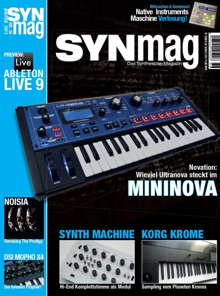 Dave Smith Mopho X4 • Yamaha MX49 • Roland Integra-7 • Native Instruments Maschine – Update • Korg Mininova • Modularsysteme • Studiologic Sledge • Korg Poly-800 II • Ableton Live 9 • Audiorealism • Sample Robot • Native Instruments Maschine – Verlosung • Korg Krome • Tom Holkenborg (Junkie XL) • Electronic Circus • Legowelt • Junkie XL • Pete Farn • Noisia • AB Syndrom