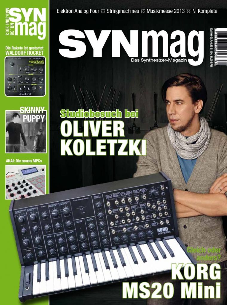 Korg MS-20 Mini • Akai Grooveboxen • Waldorf Rocket • Musikmesse – Trends & Neuheiten • Stringmachines – Geschichte & Vergleich • ARP Pro/DGX • Oliver Koletzki • Skinny Puppy • Juno Reactor • Stephan Kaske • Native Instruments – Battery 4 & Monark