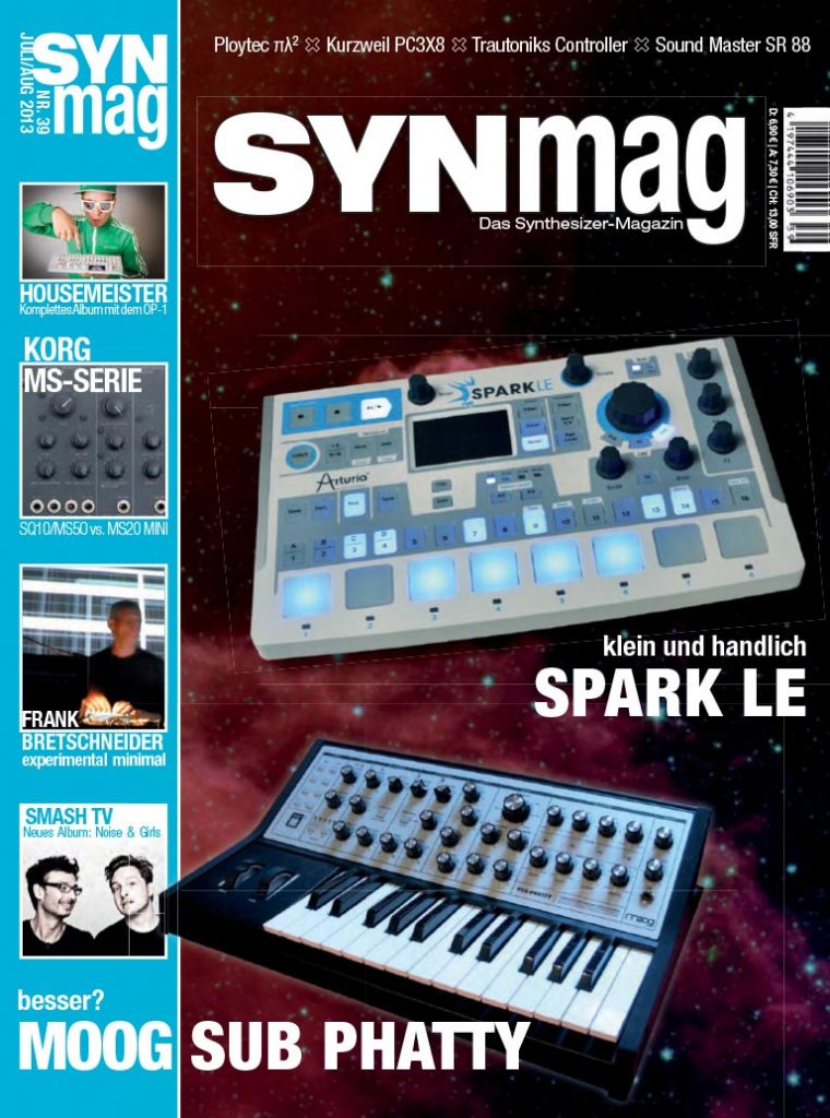 Polytec π² • Arturia Spark LE • Moog Sub Phatty • Kurzweil PC3X8 • Korg MS-20 Mini / MS-50 Vergleich • Soundmaster SR-88 • Trautoniks Controller • Hohner Guitarett • Happy Knobbing • Housemeister • Art Of Infinity • Frank Bretschneider • The Green Man • Smash TV